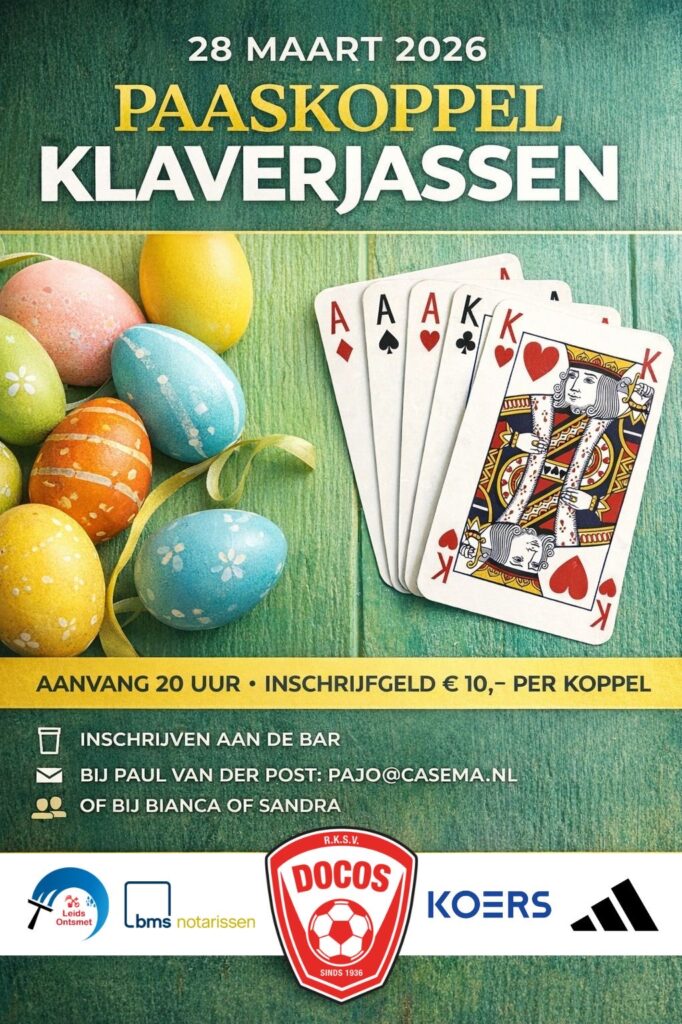 Op 28 maart is het weer zover, paaskoppelklaverjassen bij DoCoS. Dit keer een speciale editie want het is namelijk de laatste keer dat Paul van der Post het zal organiseren!